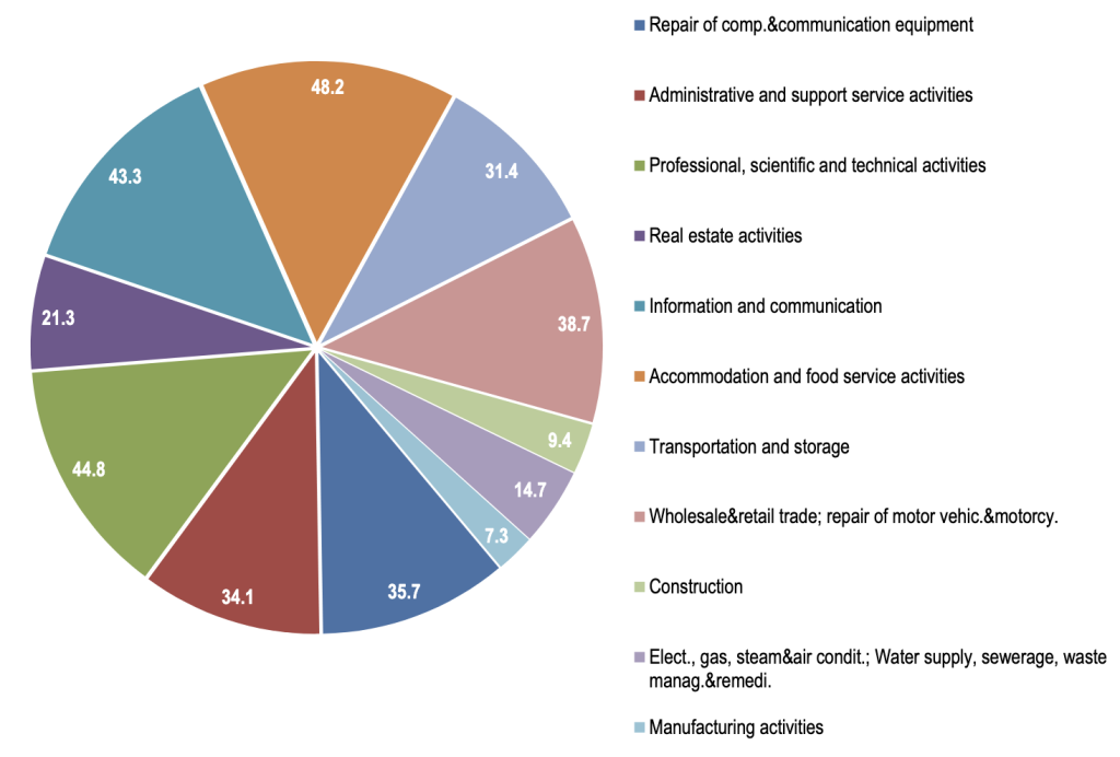 - Attività professionali, scientifiche e tecniche: 44,8%